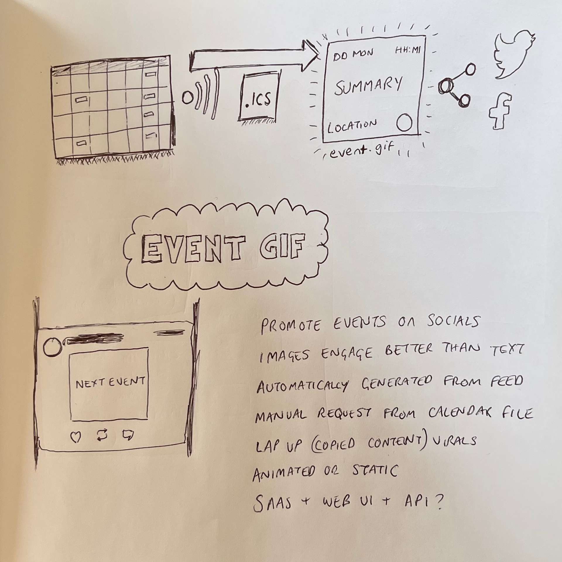 Ideally, images can be automatically generated from an ICS calendar feed for simplicity but they could also be created manually or with another data source (JSON or XML). It could also be setup as an API that could integrate with automated services like IFTTT and Zapier.
